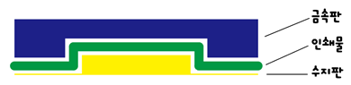 : 아래와 같이 표현되고자 하는 부분이 뚫린 모양의 금속판(암놈)과 뚫린 모양 그대로의 수지판(숫놈)이 셋트.